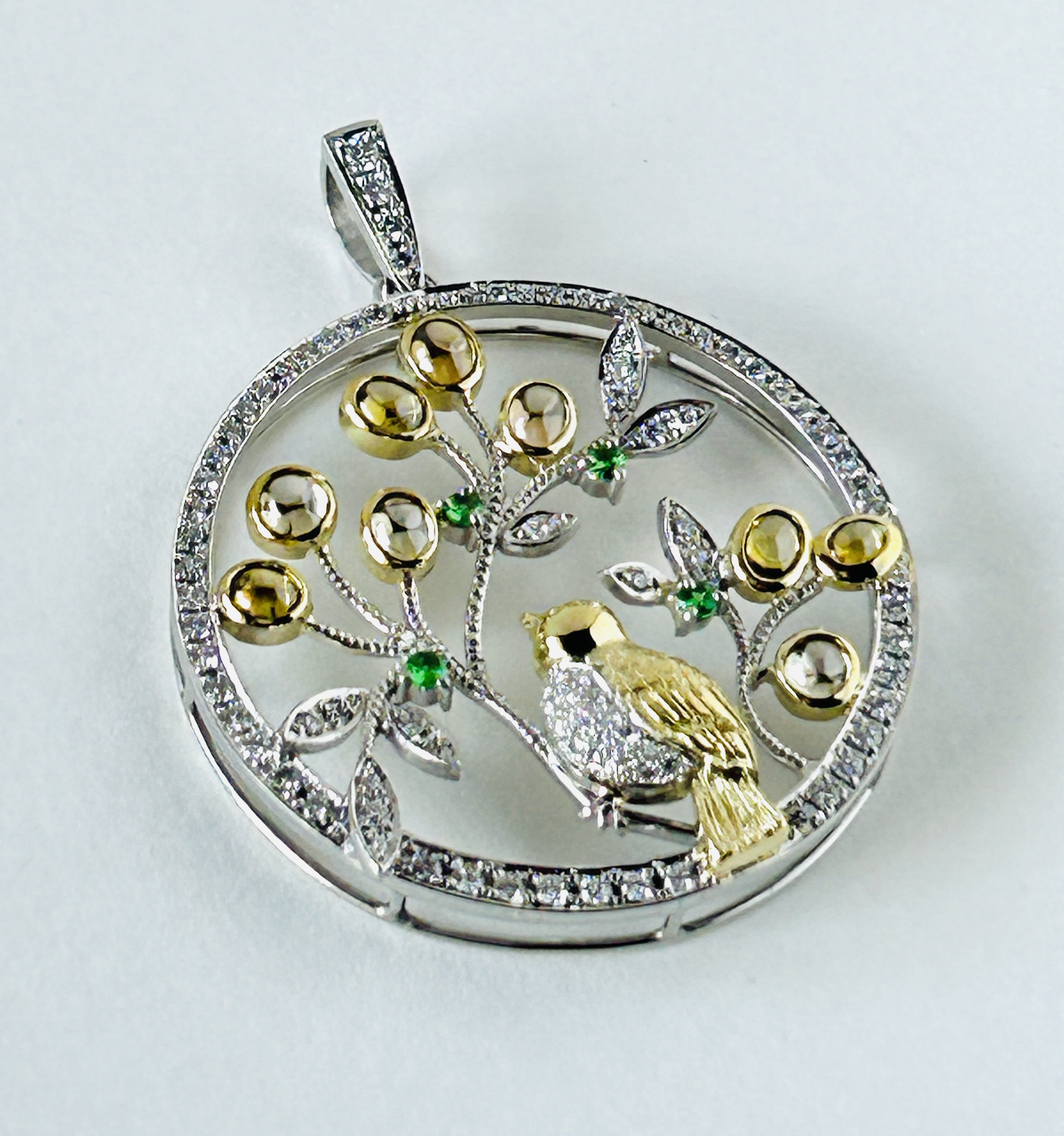お客様のご依頼で、<黄金の実を見つめる鳥🕊️>のペンダントをお作りしました。